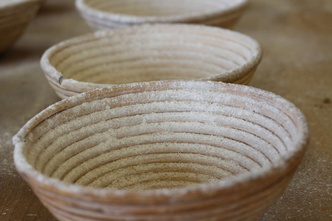 Die Teiglinge werden in den Gärkörbchen ungefähr bei 28-30°C für 60- 90 Minuten stehen gelassen. Nach dieser Zeit werden die gegarten Teiglinge auf ein mit Backpapier ausgelegten, bzw. eingefetteten Backblech, gebacken. Man kann die Brote zuvor einschneiden, damit sich die Kruste an den Einschnittstellen bildet.